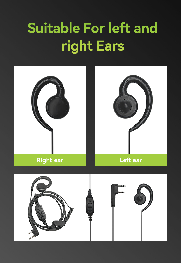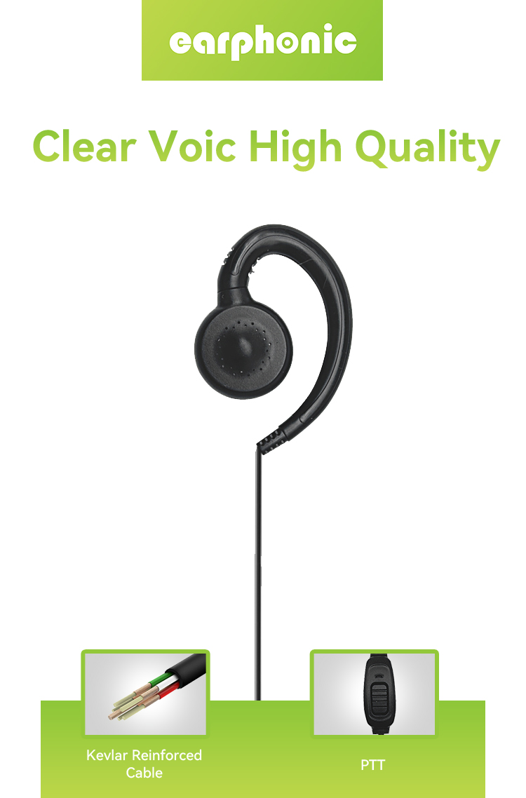 El auricular de radio bidireccional es un accesorio de comunicación compacto y discreto para walkie talkies. Está diseñado para encajar firmemente en el oído y ofrecer una transmisión y recepción de audio clara. El auricular suele tener un pequeño micrófono y un botón de pulsar para hablar incorporados en el cable. Su diseño optimizado y de bajo perfil lo hace apropiado para operaciones encubiertas, aplicación de la ley, vigilancia y otras circunstancias donde la comunicación discreta es crucial.